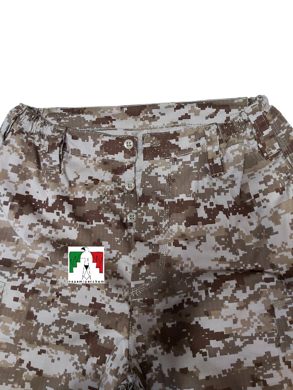 شلوار لباس دیجیتال خاکی یقه چسبی ساتر اعلا با همان پارچه مقاوم پیراهن تولید شده و برای فعالیتهای سنگین طراحی شده است. این شلوار با طراحی استاندارد و کاربردی، مکملی کامل برای پیراهن لباس دیجیتال خاکی یقه چسبی ساتر اعلا محسوب میشود.