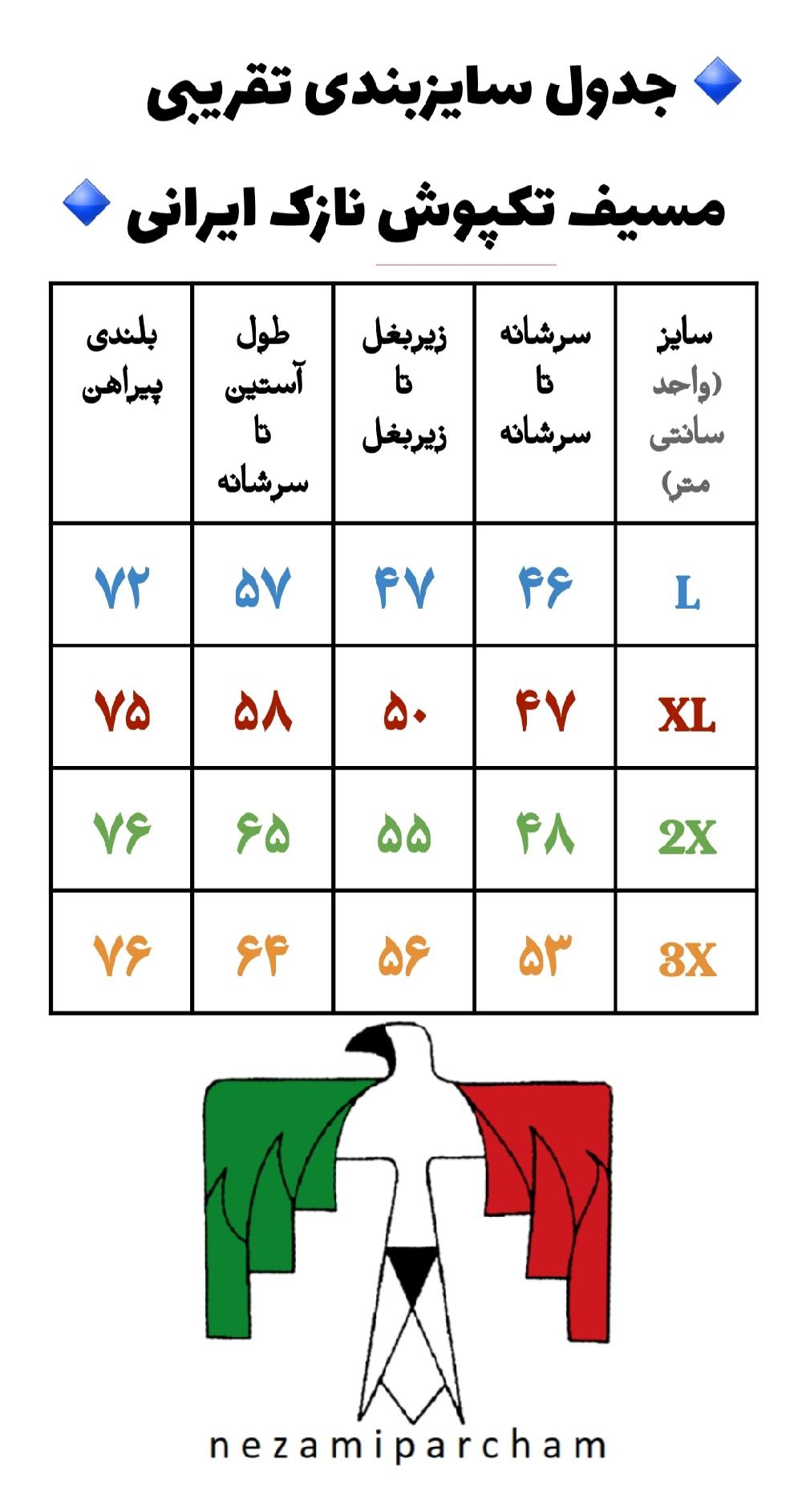 - جدول سایز تقریبی میباشد و امکان خطا تا ۱۰ سانت وجود دارد.