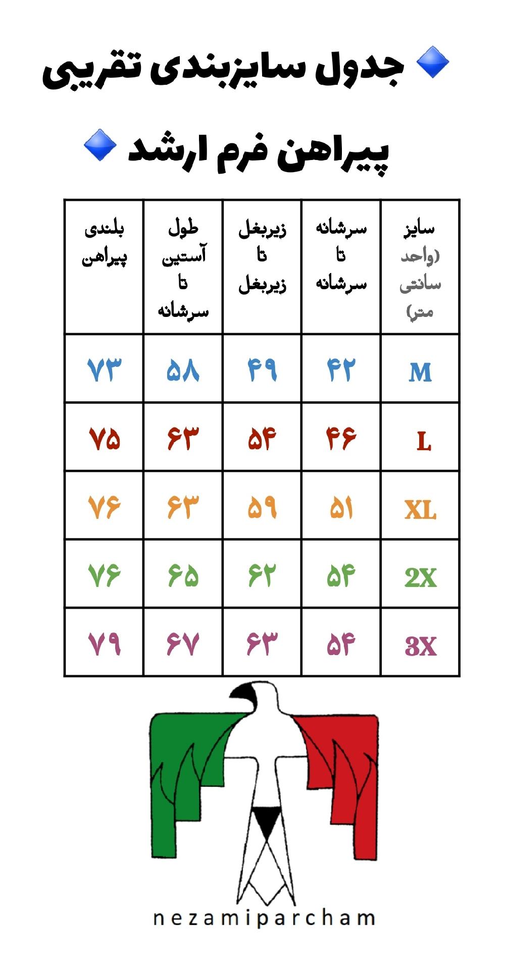 - سایزبندی: M تا 3X (جدول سایز در بخش مربوطه).