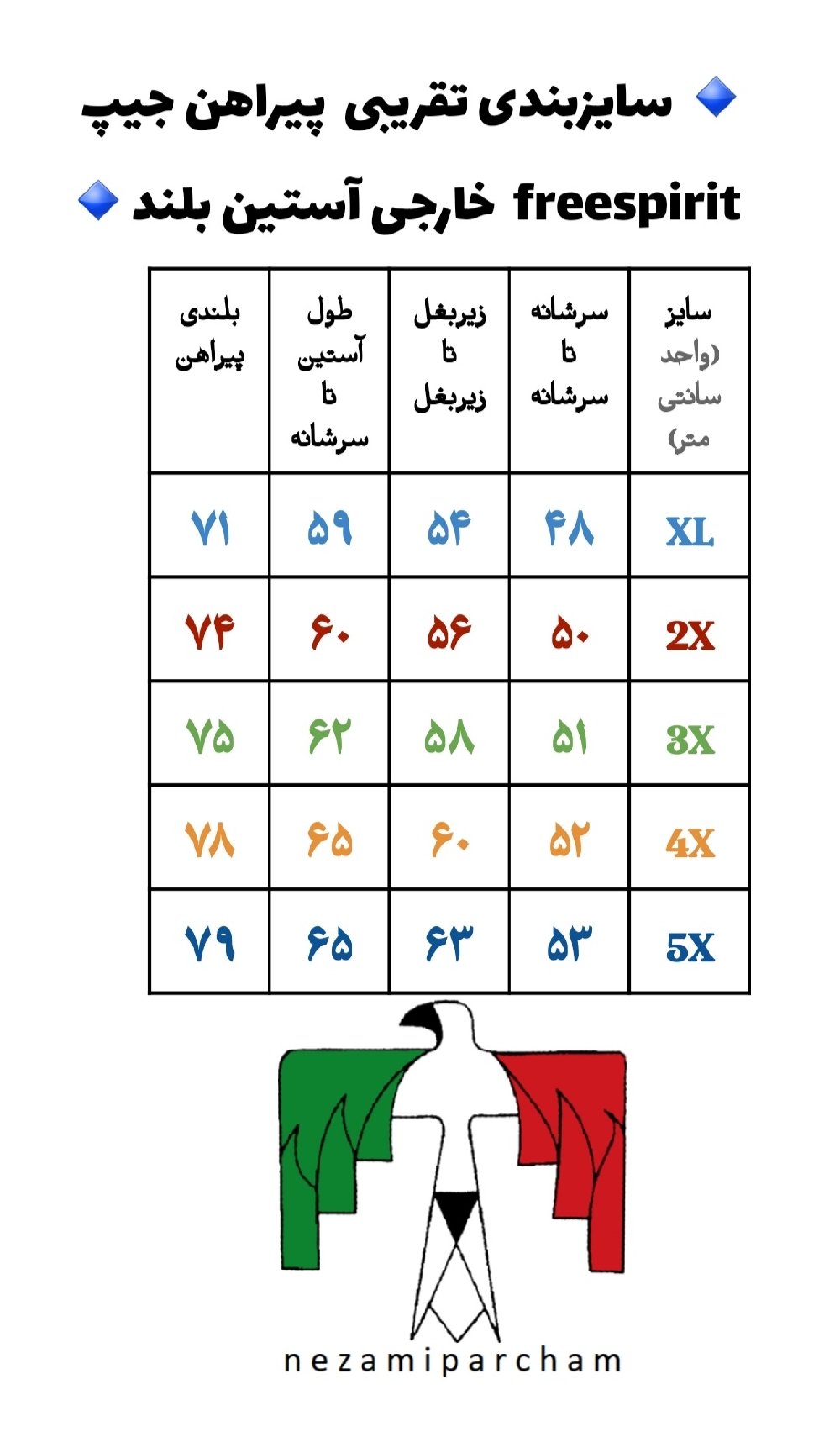 | سایزبندی | XL, 2X, 3X, 4X, 5X |