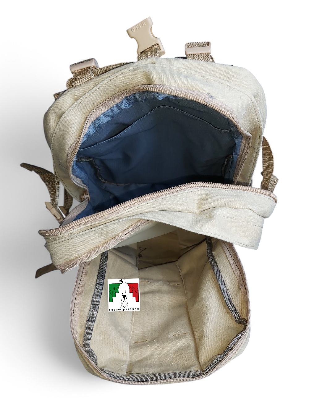 بدنه این کوله از برزنت ضخیم اعلا ساخته شده است؛ برزنتی که بهطور طبیعی در برابر ساییدگی، برخورد با سطوح خشن، آفتابسوختگی و حتی میزان قابل قبولی از آب مقاومت دارد. به همین دلیل است که این محصول برای محیطهای سخت و فعالیتهای طولانیمدت بسیار مناسب بوده و در دسته تجهیزات سنگینکار قرار میگیرد. دوخت سفارشی ایرانی نیز این کوله را از نظر دوام و استحکام ارتقا داده و باعث شده برای فعالیتهای جدی مورد اعتماد باشد.